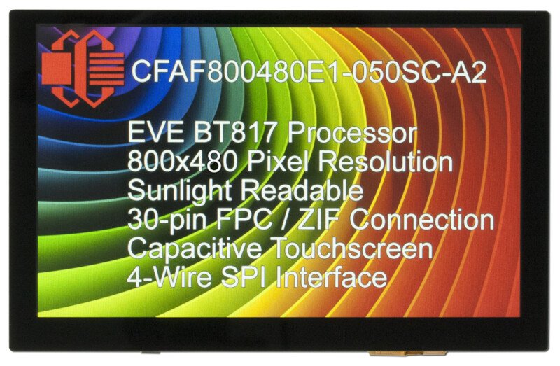 Our 5″ EVE lineup was recently updated with the new 4th generation EVE chip – the BT817. Additionally, we added external flash to increase the number of objects that can be on the display at once, and added support for resistive touchscreens.