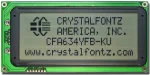 - CFA634-YFH-Kx: Yellow-green array LED backlight with positive FSTN transflective mode LCD. Displays dark (near-black) characters on yellow-green background. The display can be read in normal office lighting, in dark areas, and in bright sunlight.