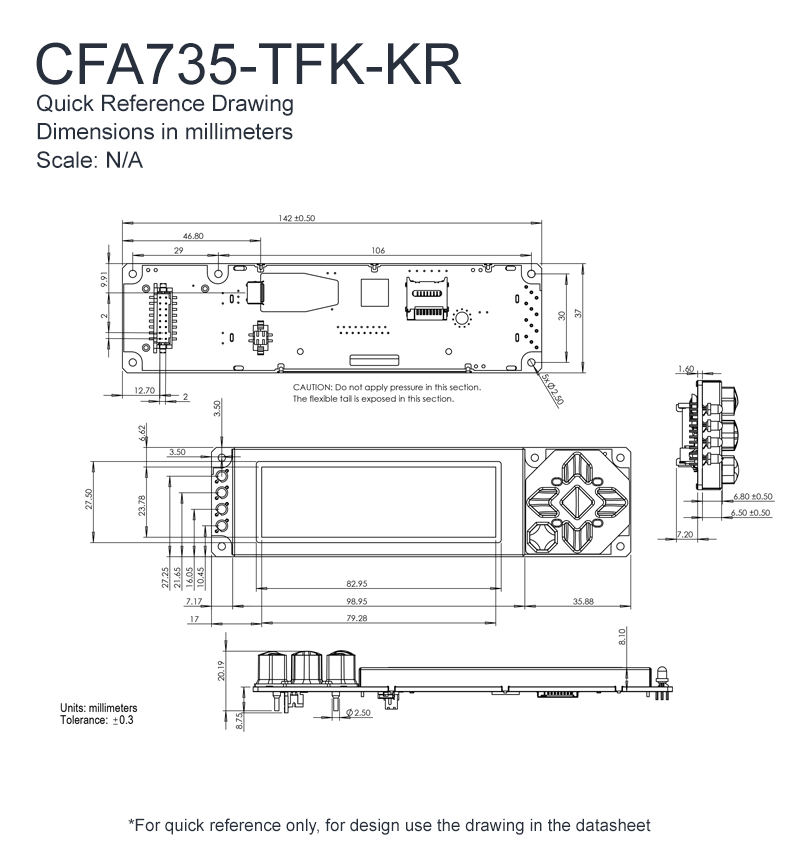 Description: Crystalfontz America Inc. is proud to announce the release of the CFA735 family of intelligent modules. The CFA735 family represents the first of a new generation of our serial and USB interface modules as part of our continuous improvement process. Designed as an easy replacement for the CFA635 family of modules, the CFA735 family is a significant improvement in capability, capacity, flexibility and usability.