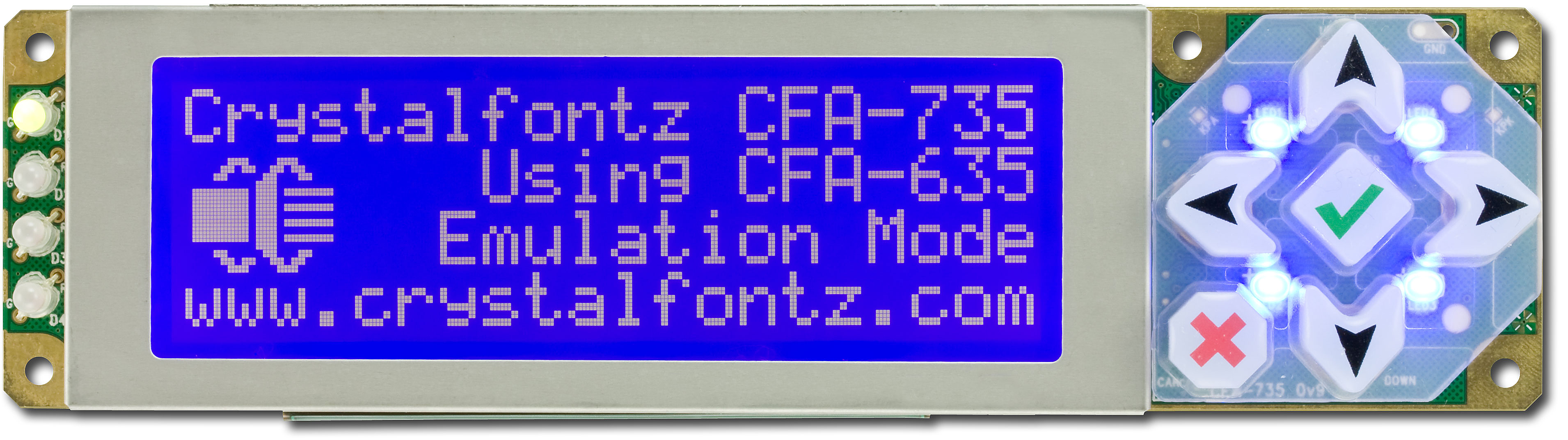The new part numbers will have the bracket / SLED and overlay type as a PREFIX to the configured part number. The choice for bracket / SLED to a display order will be via the cart options. Our CFA835 displays were introduced with these configuration options.