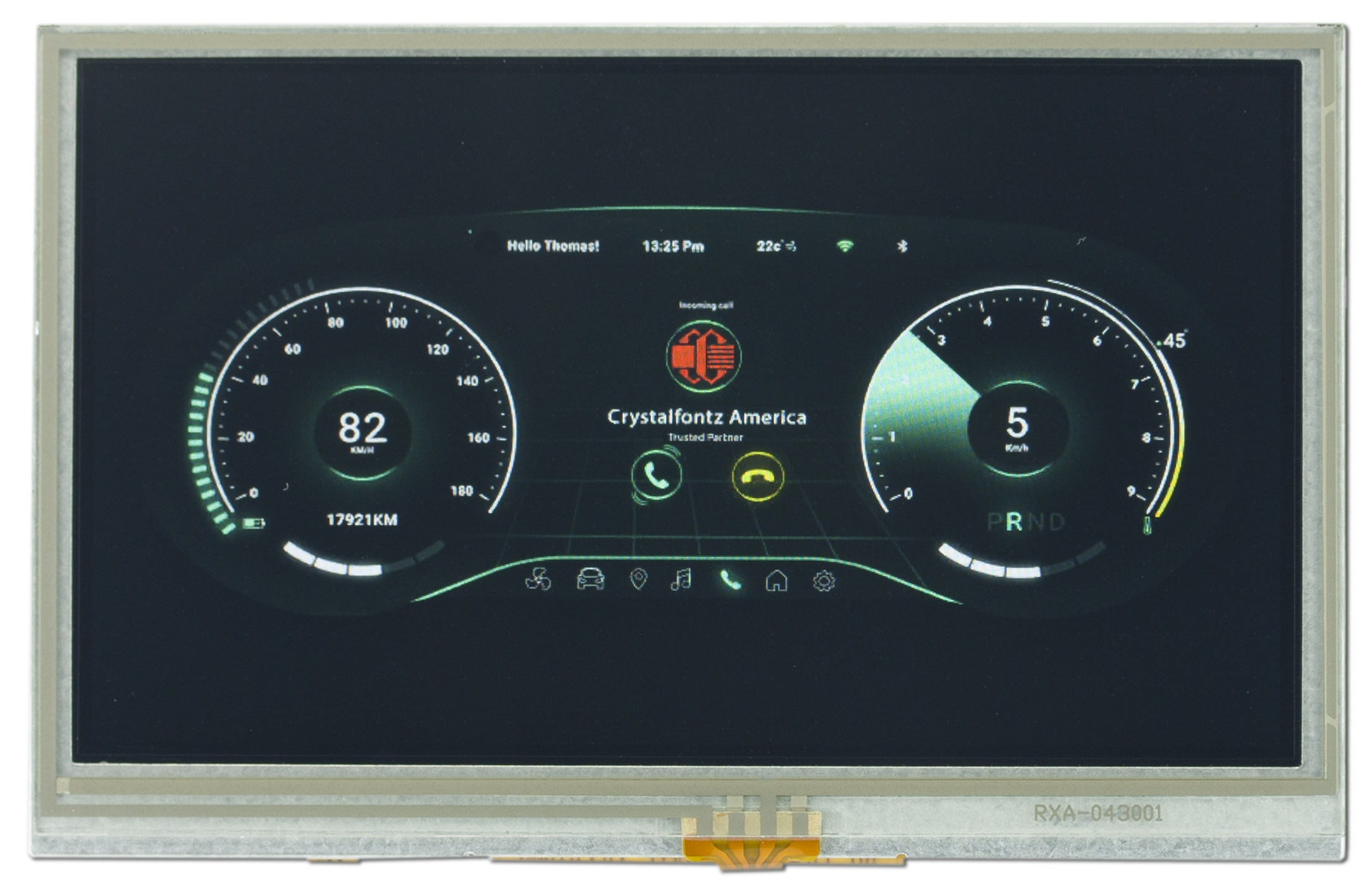 The included 4.3" TFT display is sunlight readable with a bright backlight at 740 nits. It is IPS, so it can be used at any viewing angle without color inversion. The resistive touchscreen allows users to input information, even if they are wearing gloves or there is moisture on the screen.