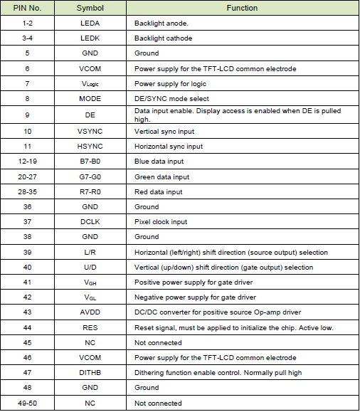 - Backlight, constant current, 200mA max, 16~19v