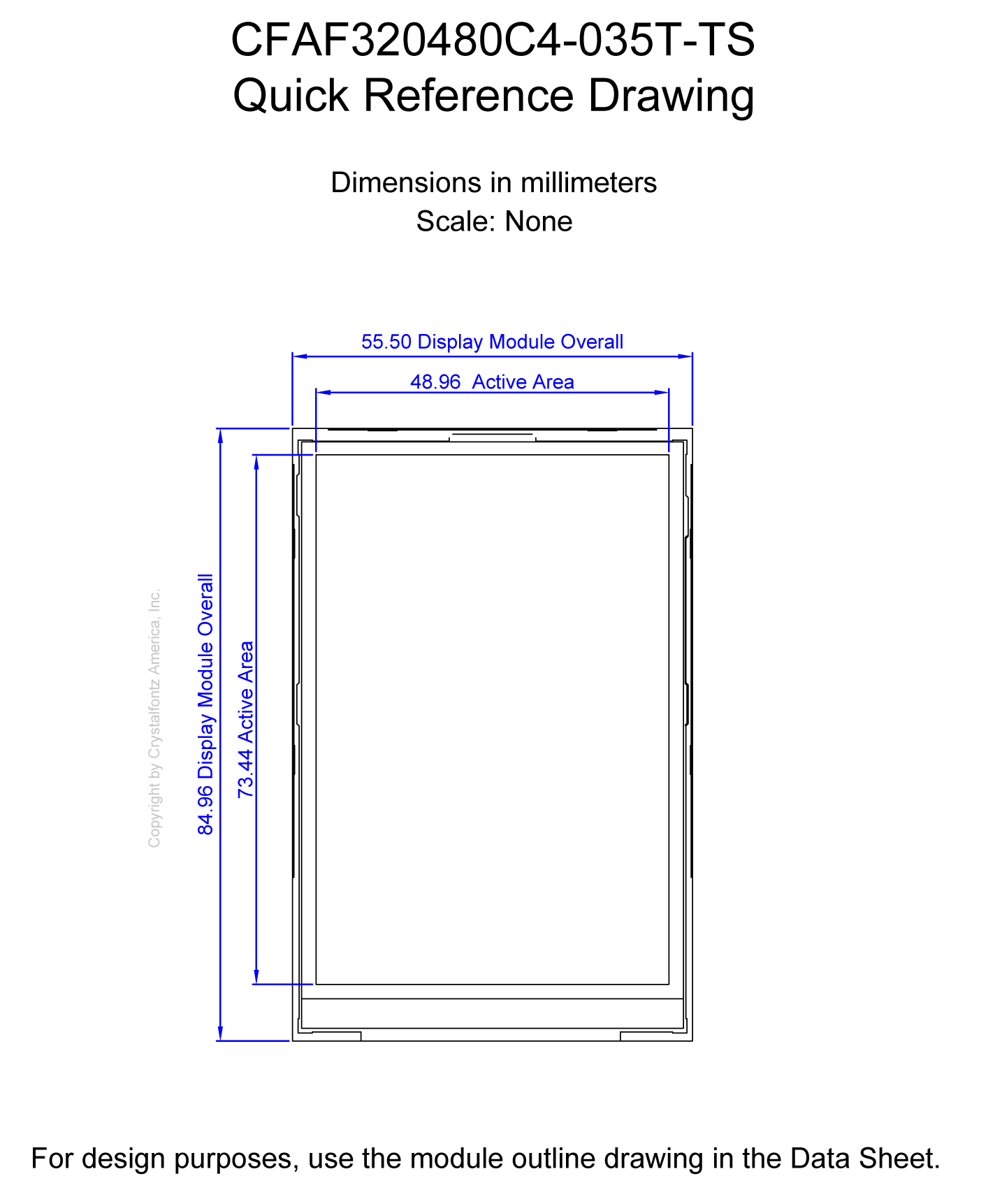 Need a non-touch screen version? The CFAF320480C4-035T offers the same display module without touch screen. It is slightly thinner and less expensive.