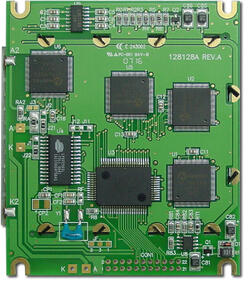 128x128 Graphic LCD, RoHS Compliant, High Output White Edge LED Backlight, FSTN Negative, Transmissive -20°C to +70°C 6:00 viewing angle. Negative Voltage Generator, Temperature Compensation