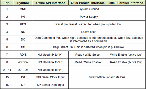 - Simple 4-wire, 8-bit SPI or 8-bit parallel interface