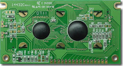 White on black 144x32 Graphic LCD with negative voltage generator and temperature compensation