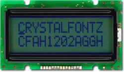 Parallel Character LCD 12x2, RoHS Compliant, Green LED Backlight, STN Positive, Gray, Transflective, -20°C to +70°C, 6:00, Edge Style Backlight