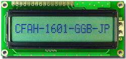 Parallel Character LCD 16x1, RoHS Compliant, Green LED Backlight, STN Positive, Gray, Transflective -20°C to +70°C 6:00