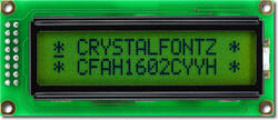 Sunlight readable yellow 16x2 character LCD with an LED backlight and a built-in negative voltage generator.