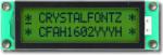 Parallel 16x2 character LCD module with a yellow-green LED backlight, STN positive display mode, and yellow-green glass with a transflective polarizer, operating at -20°C to +70°C temperature range, boasting a 6 o'clock viewing direction.