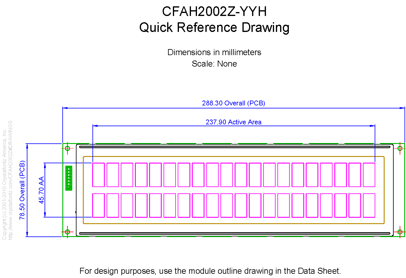 Parallel Character LCD 20x2, RoHS Compliant, Yellow/Green LED Backlight, STN Positive, Yellow/Green, Transflective -20°C to +70°C 6:00