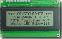 Parallel Character LCD 20x4, RoHS Compliant, White Edge LED Backlight, FSTN Positive, Transflective -20°C to +70°C 6:00