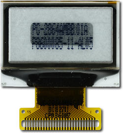 A 128 x 64 graphic OLED module with two separate areas of color: yellow for the top 16 pixels, and blue for the bottom 48 pixels. This graphic OLED is super low power, using less than 90 mW with all pixels lit. Displays like this can be used in MP3 players, as secondary screens in mobile phones, placed on the end of a blade or hard drive enclosure -- the sky is the limit.