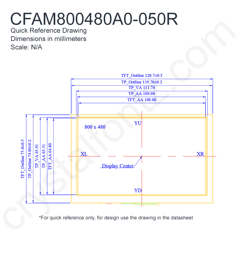 This display has been revised to the CFAM800480A1-050TR. Please contact technical support with any questions.