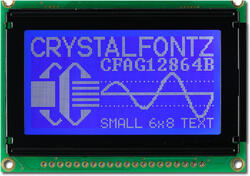 Our CFA10006 graphic display demonstration board with CFAG12864B-TMI-V display module installed.