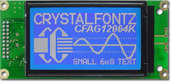 Our CFA10006 graphic display demonstration board with CFAG12864K-TMI-TN display module installed.