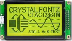 Our CFA10006 graphic display demonstration board with CFAG12864M-YYH-TN display module installed.