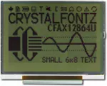 Our CFA-10021 graphic display demonstration board with CFAX12864U-NFH graphic LCD display module installed.