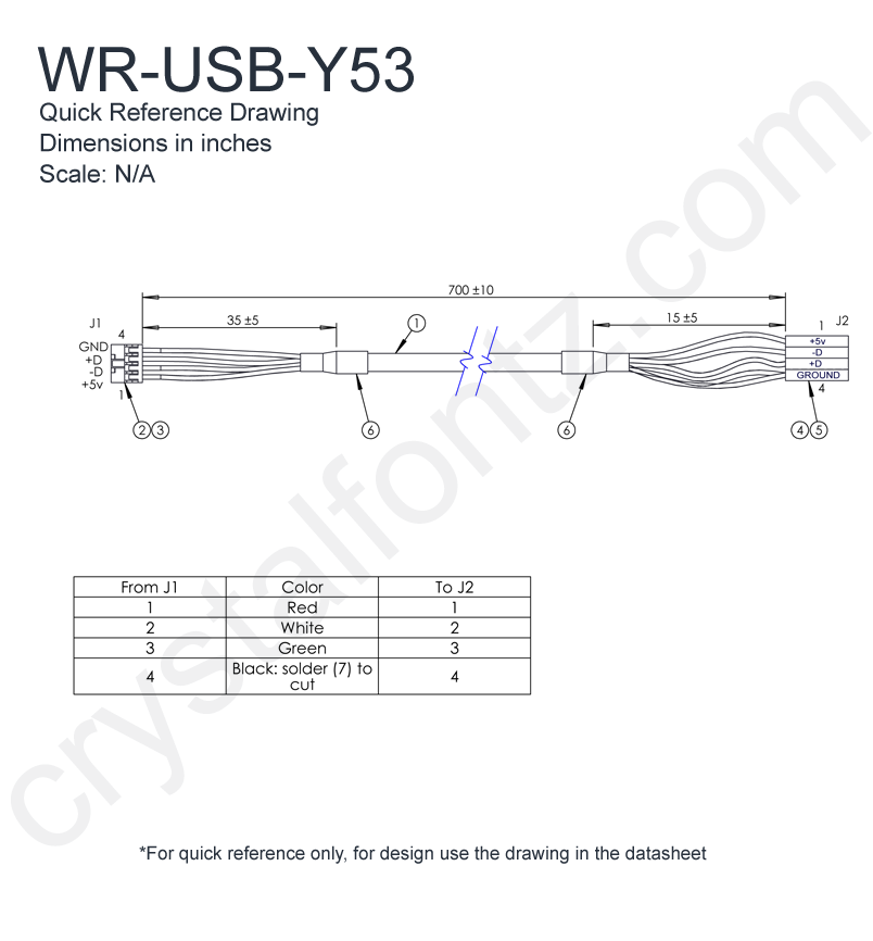 This USB cable is to connect any of our modules that use a 2mm USB header to a PCB motherboard with a 2mm header. This cable is approximately 27 inches long.The WR-USB-Y33 is identical to this cable except with a 2.54mm header to connect to a motherboard with a wider pitch.